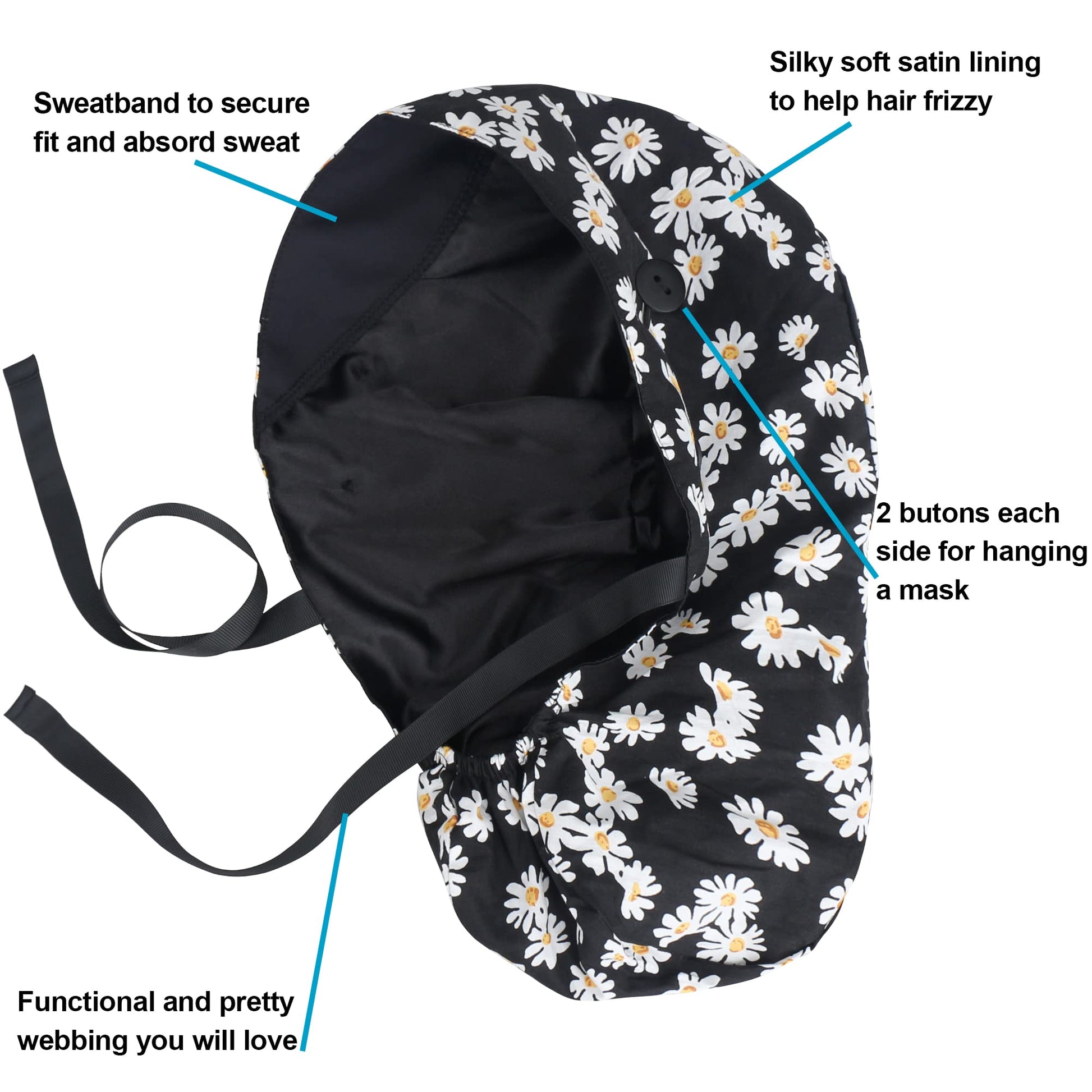 - Unmatched quality: our scrub caps are designed with your comfort in mind. Featuring an added sweatband and two buttons on the sides to secure your mask, plus an adjustable elastic on the back for a perfect fit.