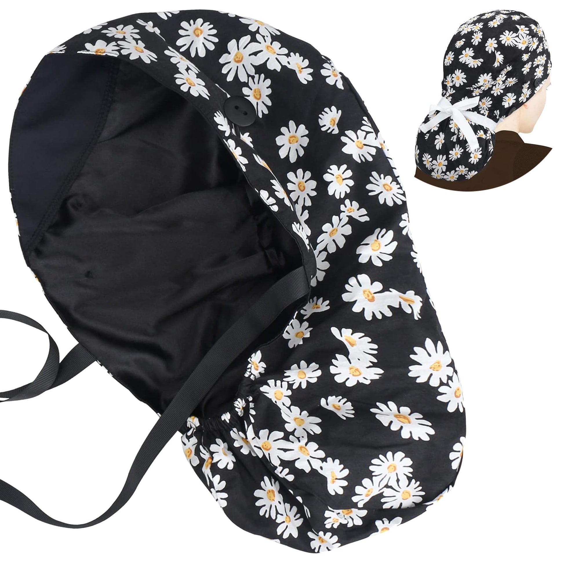 ABAMERICA Ponytail Scrub Caps for Women Surgical Caps Nurse Hat with Functional Ponytail Holder for Long Hair, Single or Satin-Lined