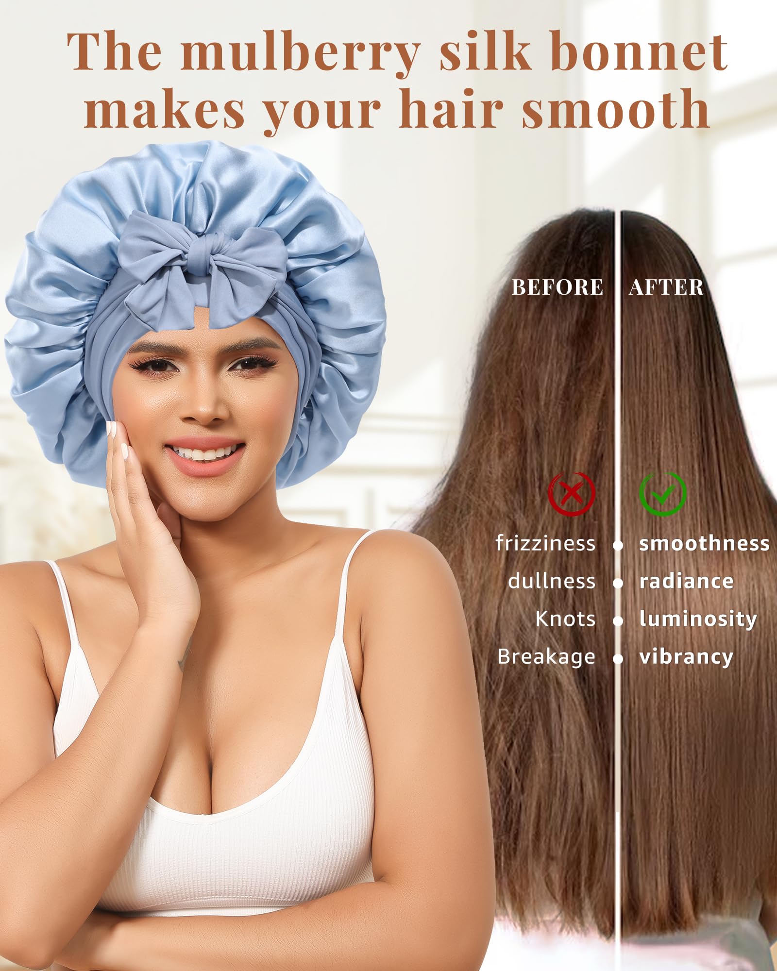 - GENTLE ON HAIR: Made from premium 100% mulberry silk, this hair bonnet is soft and gentle on hair to prevent breakage and damage when sleeping
