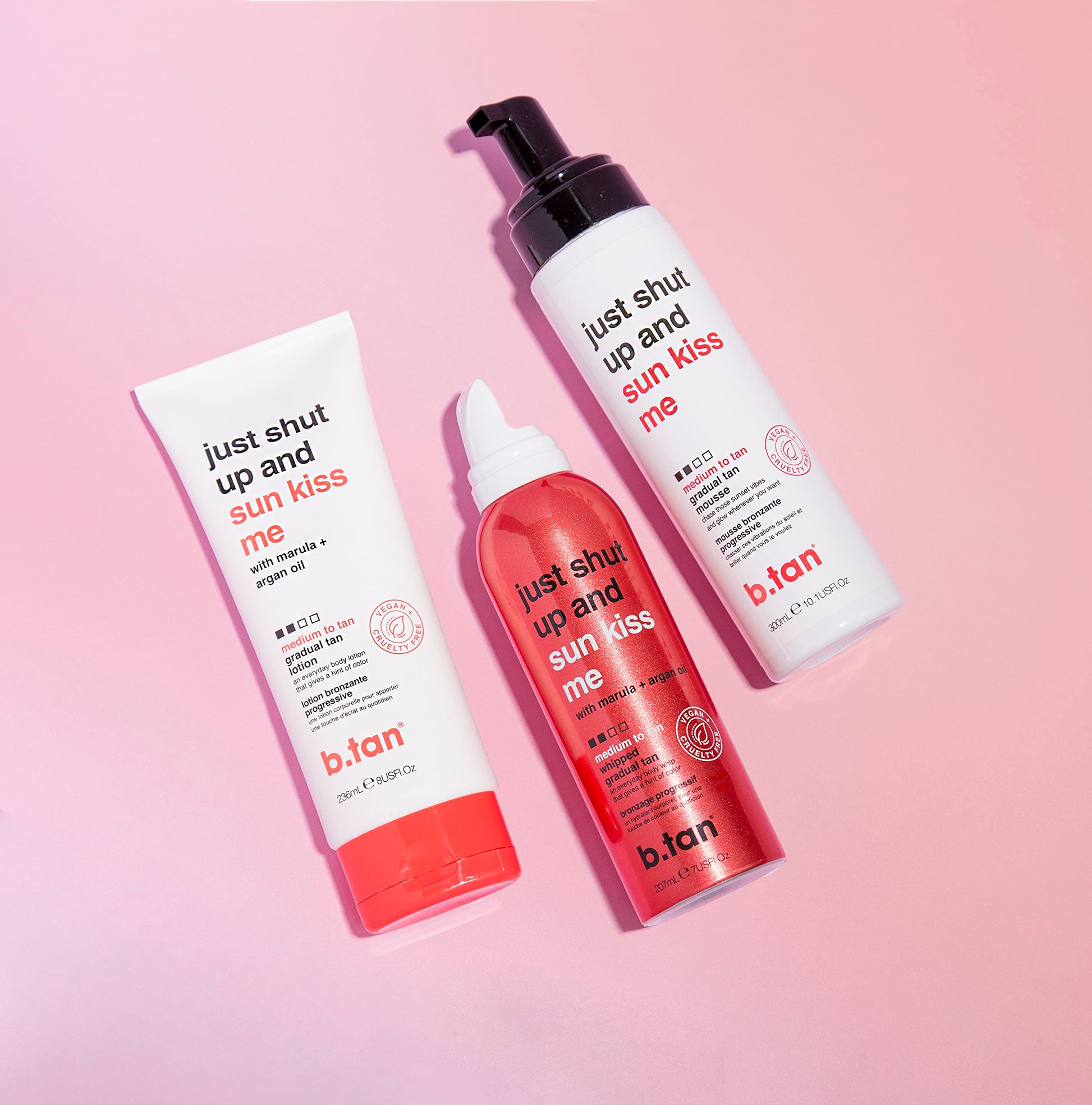 b.tan Medium Gradual Self Tanning Lotion | Just Shut Up and Sun Kiss Me Everyday Glow Lotion - Develop a Bronzed Glow, Infused With Marula + Argan Oil, Vegan, Cruelty & Paraben Free, 236ml