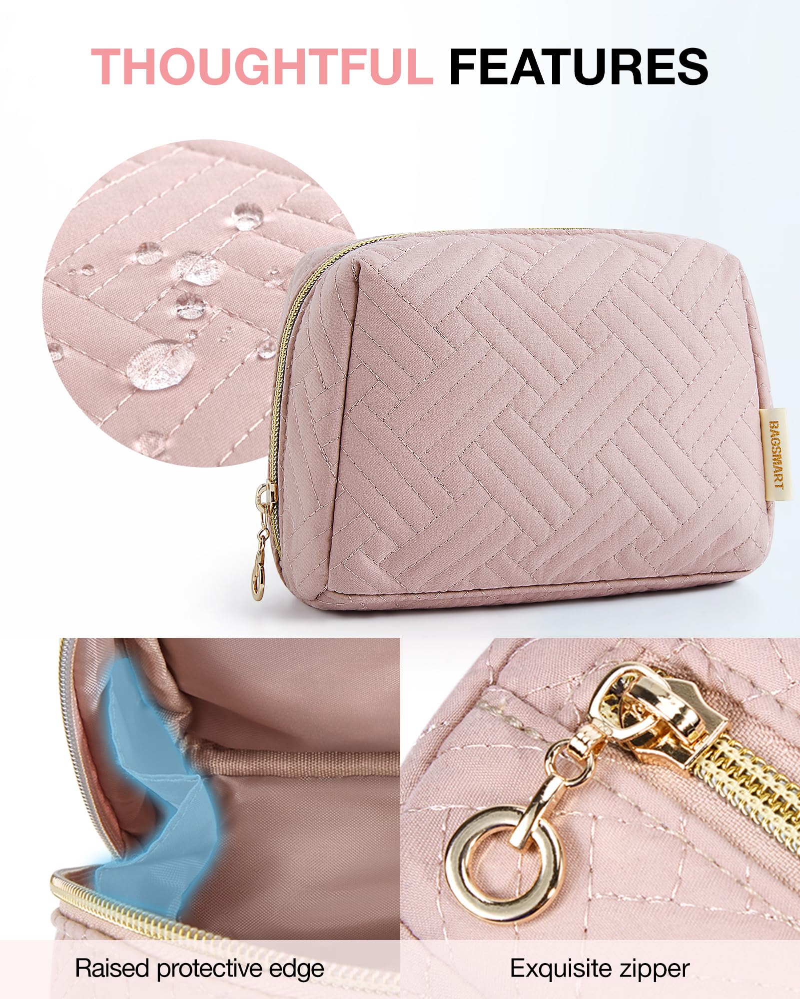 BAGSMART Small Makeup Bag, Travel Cosmetic Bag Make Up Pouch Small Travel Essentials for Women Dorm Room Essentials Pouch,Water-resistant Toiletry Bag,Makeup Organizer Bag,Pink