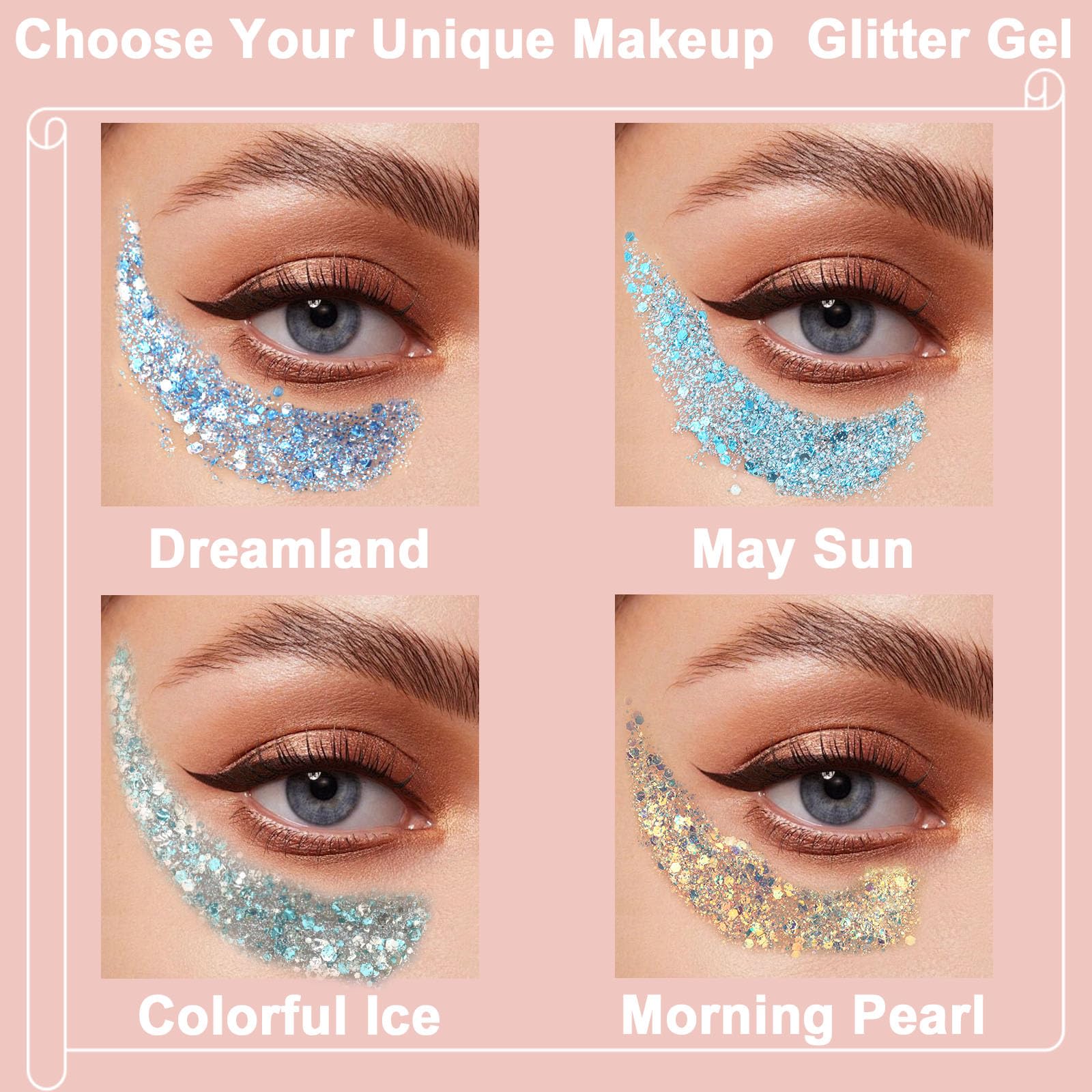- Universally Appeal: With its limitless sparkle, Boko chunky glitter gel offers unique looks. Whether you're aiming to sparkle your daily look or searching for a glitter hue for a themed event, our eye glitter will help you radiate glamour and confidence. From parties to weddings, festivals, art competitions, concerts, stage performances, and bars, our gel glitter will elevate your makeup sparkle. Additionally, Boko fairy glitter gel is a great choice for sharing with friends and family.