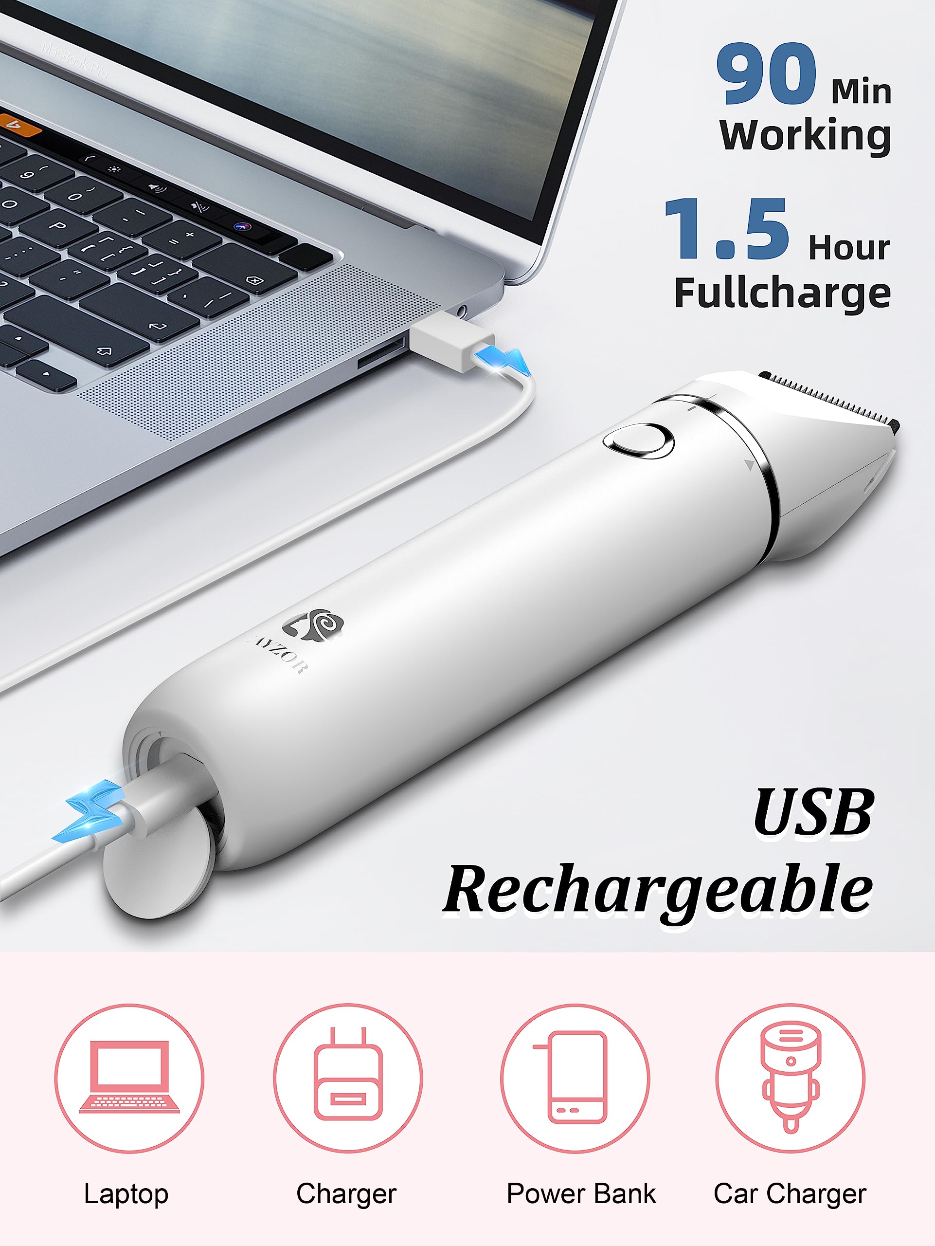 - 【Rechargeable & Portable】 This bikini trimmer comes with a convenient USB charging cable, providing quick and easy charging. With just 1.5 hours of charging time, enjoy up to 90 minutes of cordless use. The included extra carrying bag makes it perfect for travel. Hygiene, and convenience on the go.
